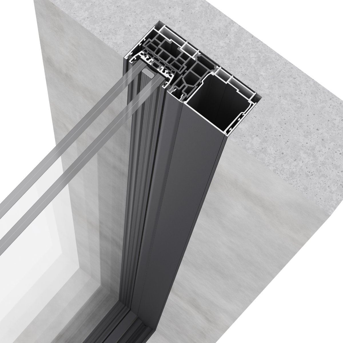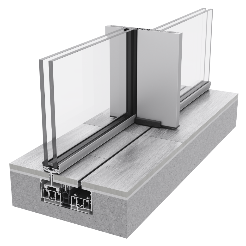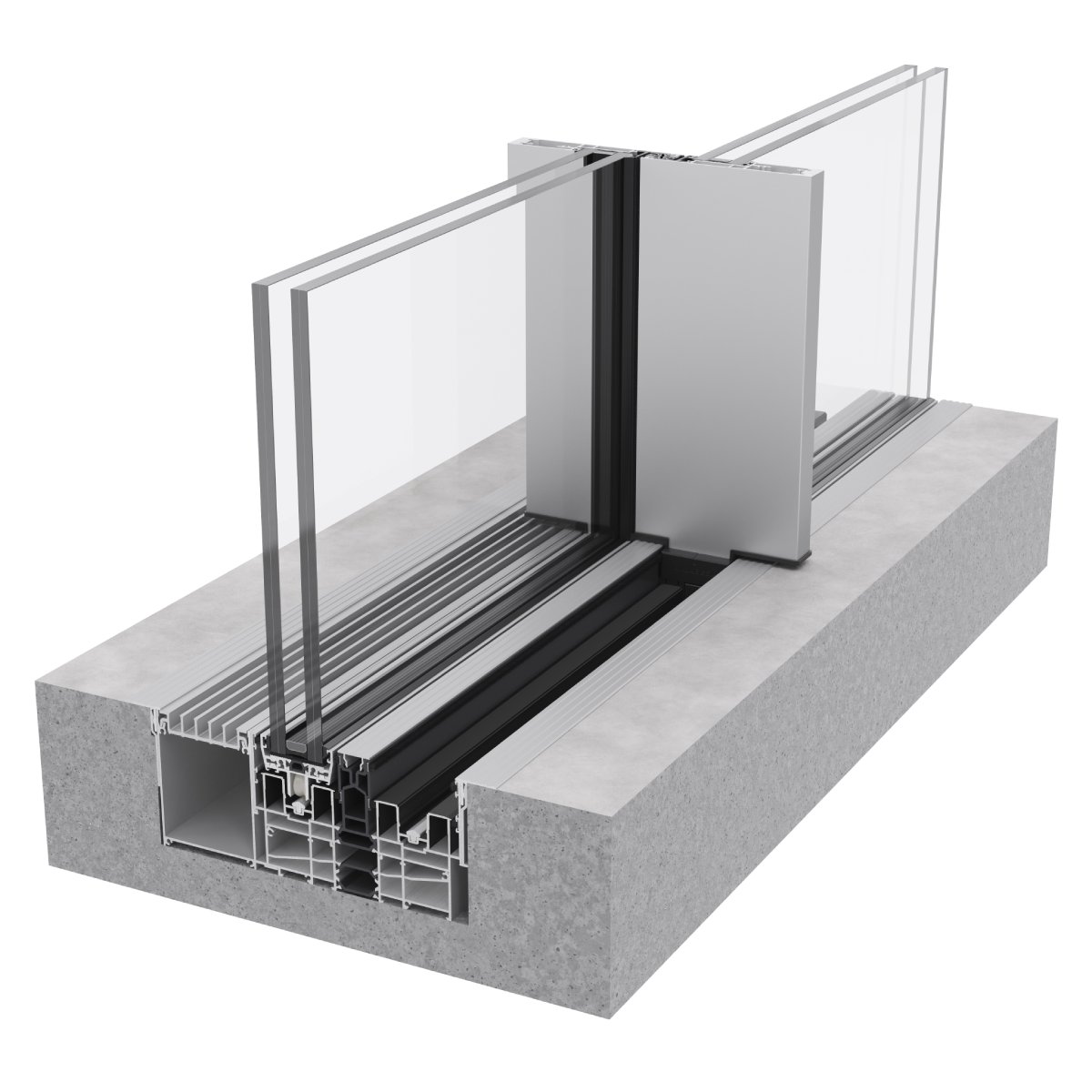 Corredera minimalista de gran formato que combina transparencia extrema, altos niveles de aislamiento y soluciones innovadoras como suelo continuo, esquina libre y perfiles ocultos para un estilo contemporáneo impecable